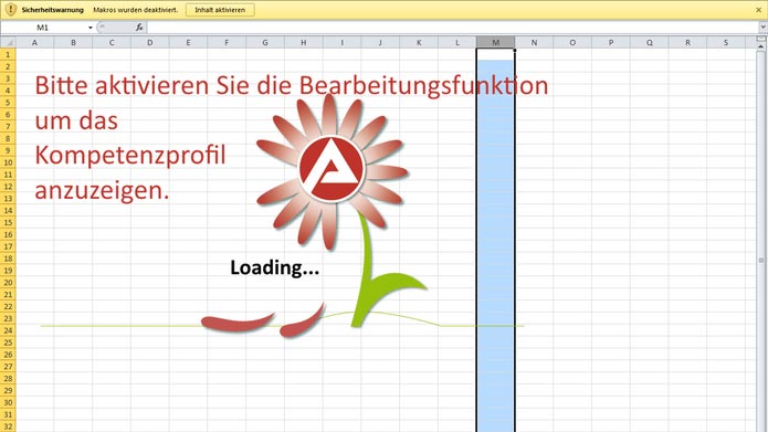Die E-Mails werden bisher im Namen eines Rolf Drescher von verschiedenen Adressen aus versandt, also nach dem Schema “rolf.drescher@”. Dies muss jedoch nicht so bleiben, daher ist auch bei anderen Absendern Vorsicht angebracht. Im Anhang der Mails befindet sich oft ein Bewerbungs-PDF, dass vollkommen korrekt und natürlich wirkt und sogar den Namen des Adresssaten enthält. der eigentliche Schadcode sitzt jedoch in einem Excel-File. Öffnet man dieses, bittet Excel den Benutzer, die Bearbeitungsfuntkion zu aktivieren.